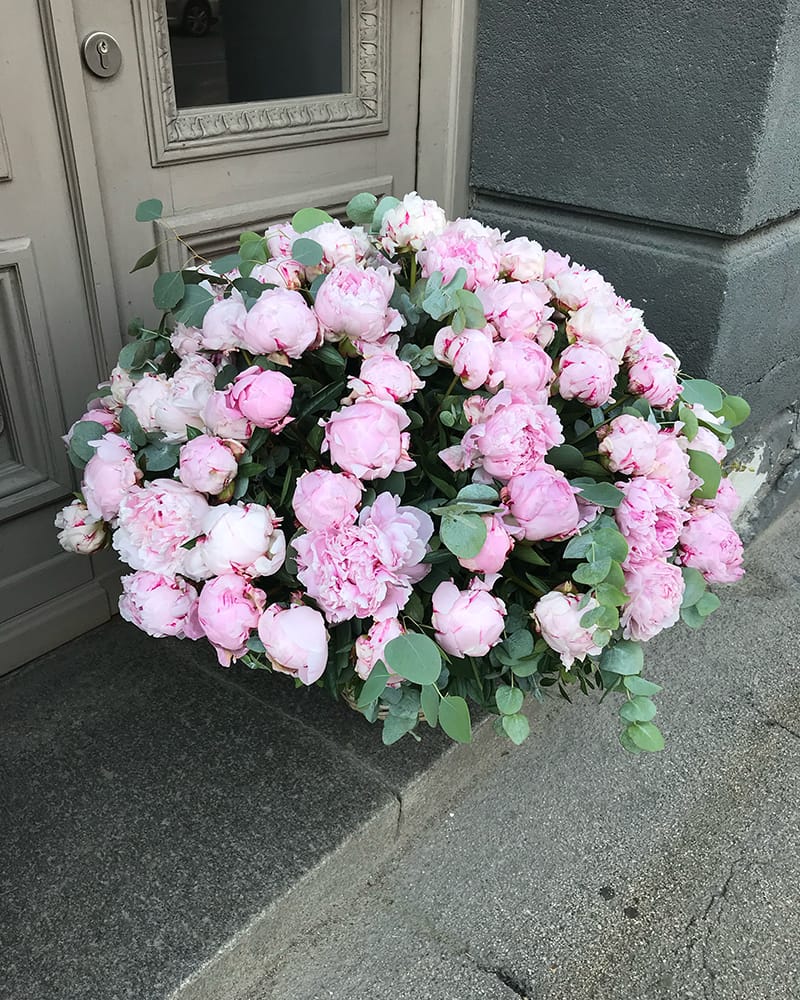 101 peonija grozā ar eikaliptu