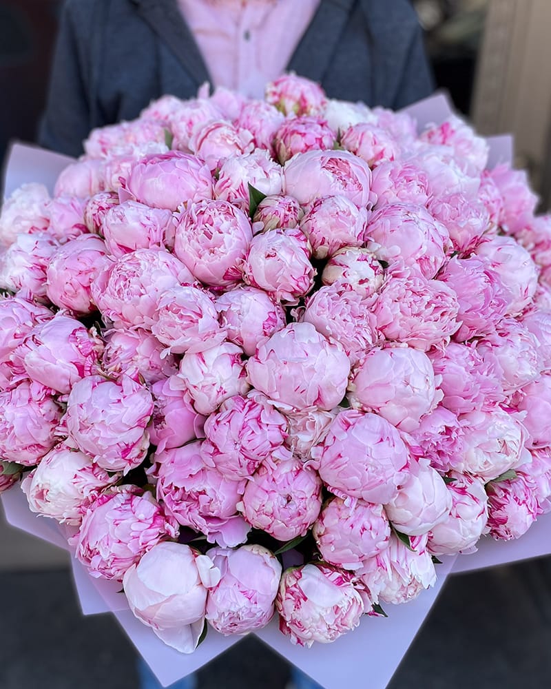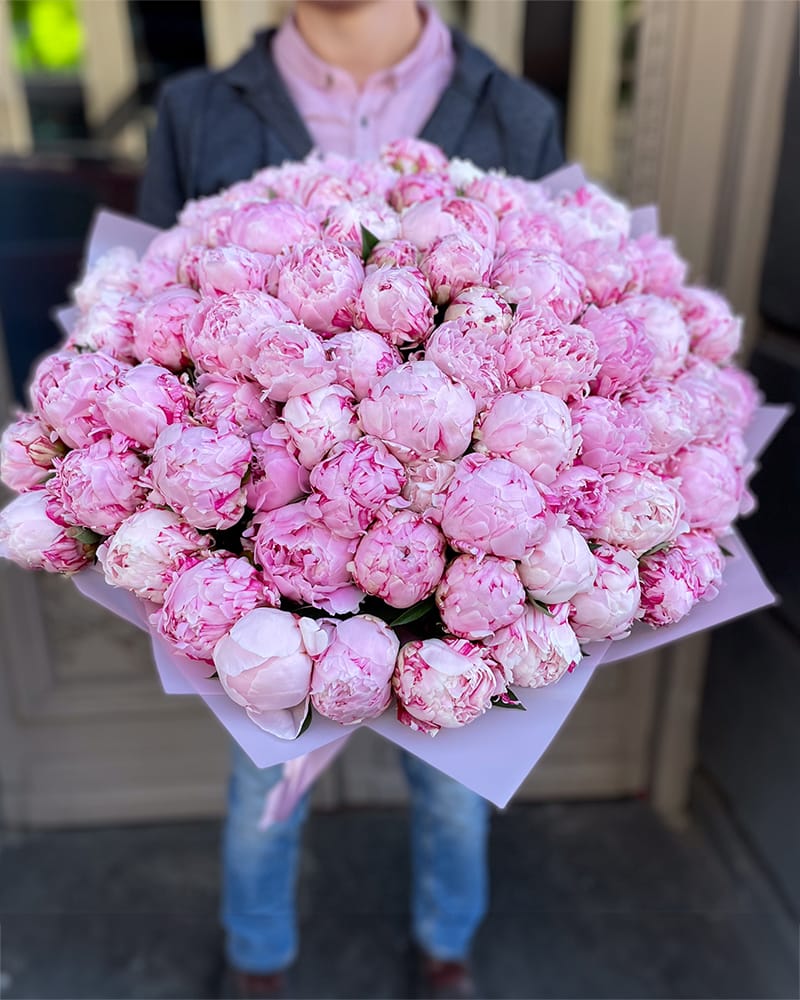 101 rozā peonija