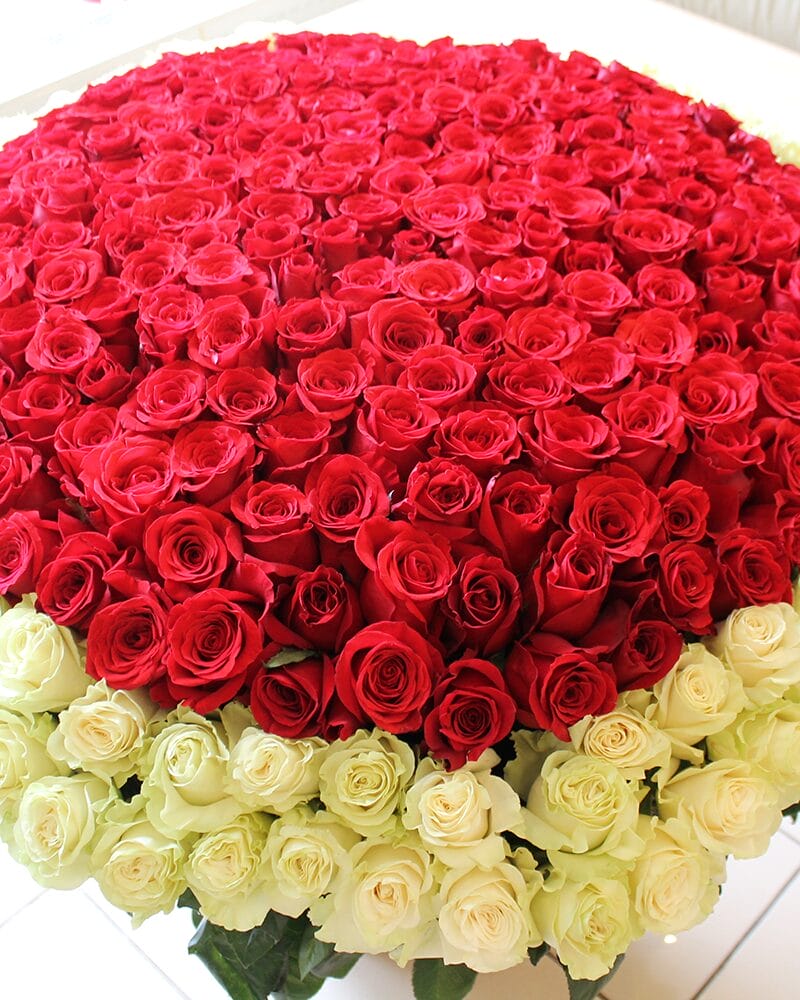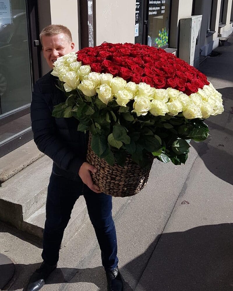 201 balta un sarkana roze grozā.