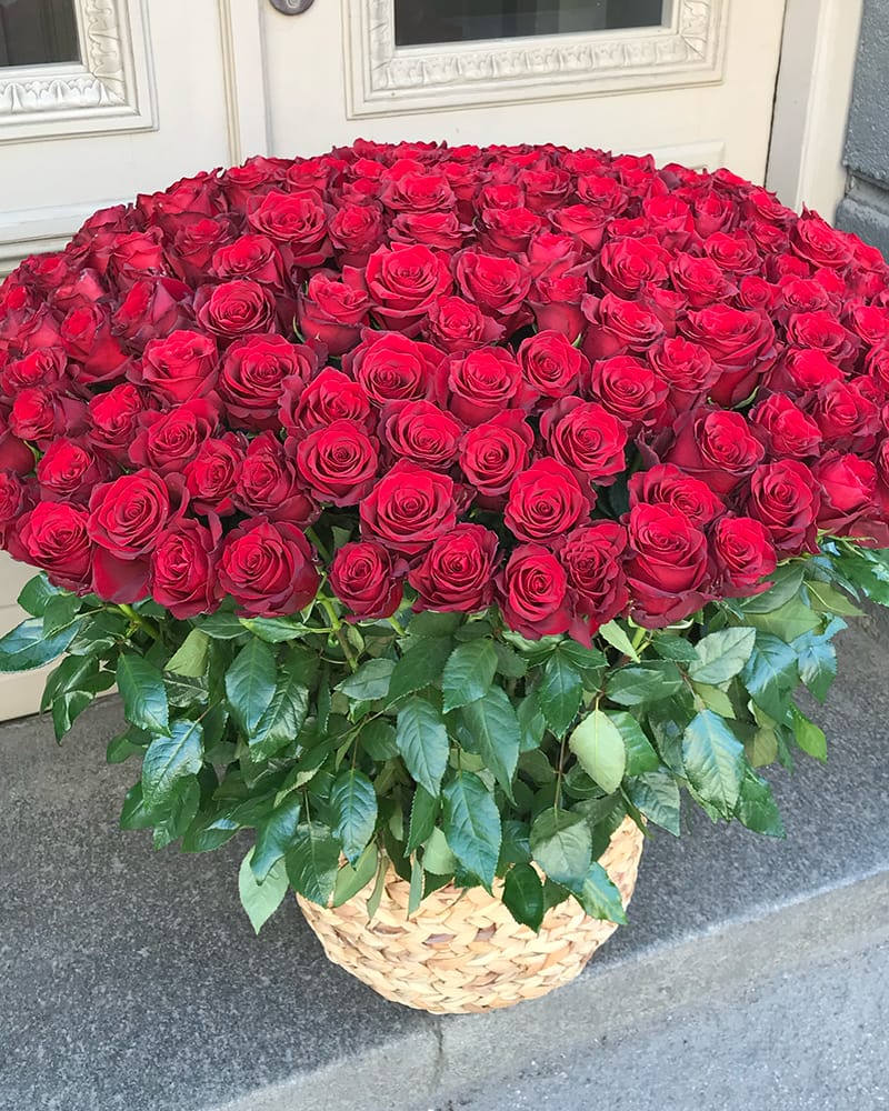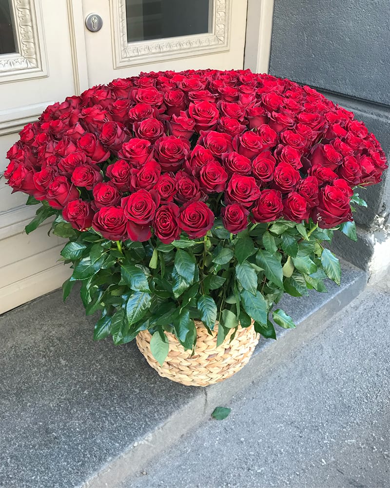 Ekskluzīvs ziedu sveiciens, ļoti liels ziedu pušķis no 201 vienas sarkanas rozes, ziedu garums 60 cm.