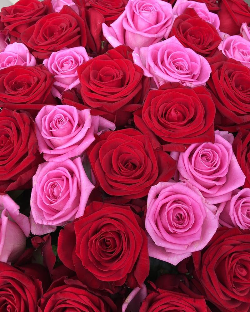 51 sarkana un rozā roze