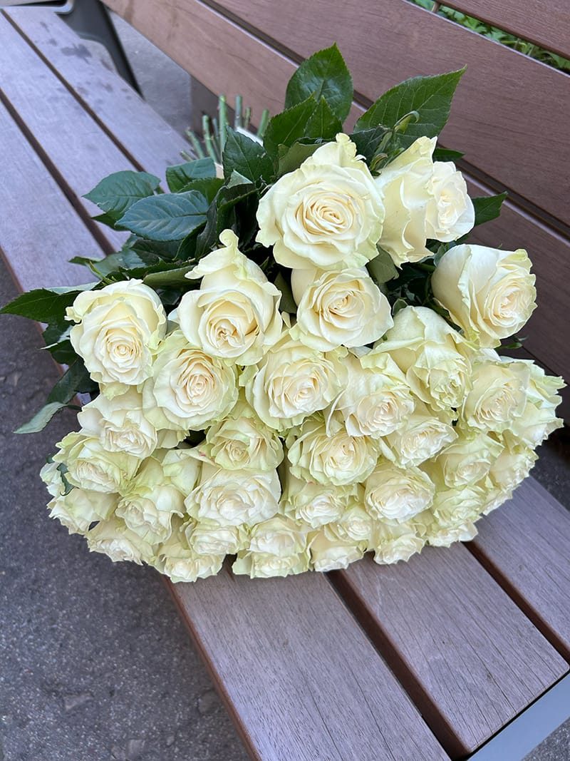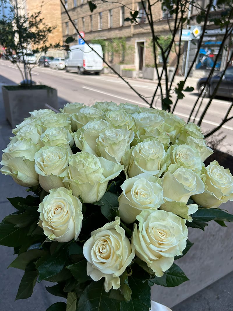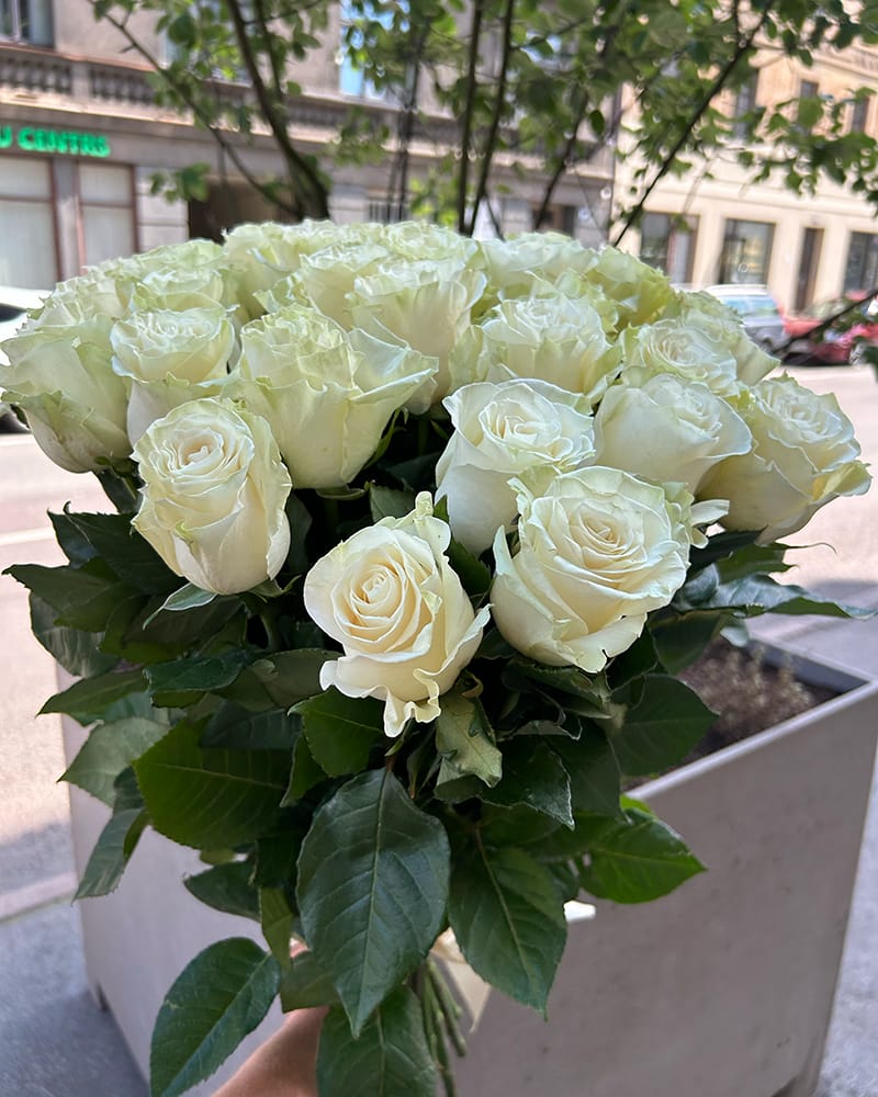 Baltas Premium klases rozes pušķī, izvēlētas labākās un izturīgākās šķirnes. Pušķī var tikt izmantotas Ekvadorā audzētas rozes White chocolatte, Mondial, Proud vai citas līdzvērtīgas. Pušķī iespējams mainīt rožu skaitu.