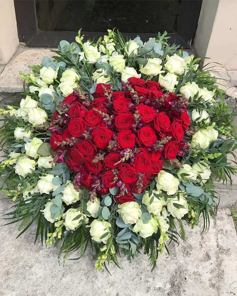 Bāgātīgs bēru vainags kas sastāv no 100 rozēm, eikalipta, lauvmutītēm un citiem ziedim