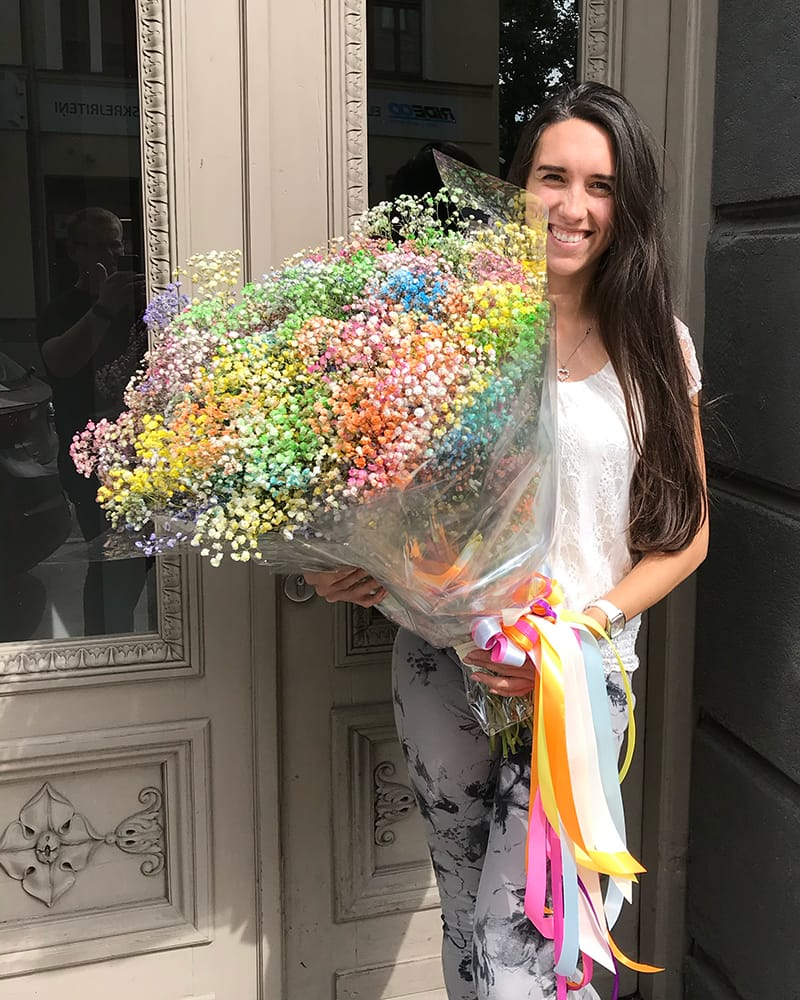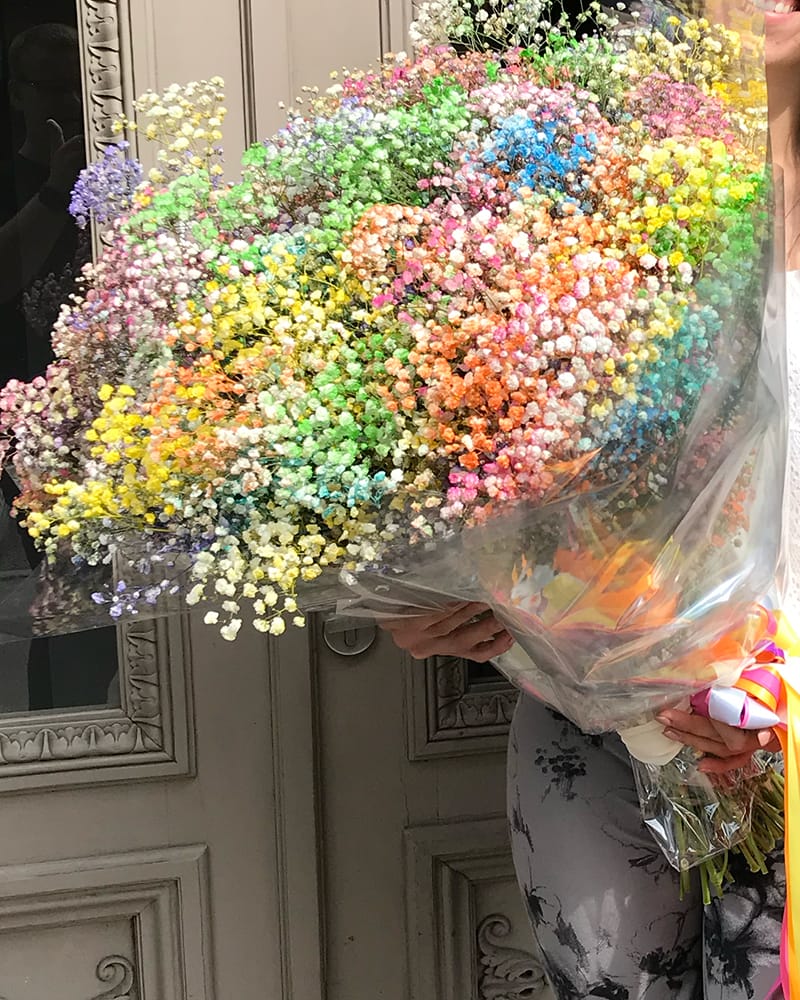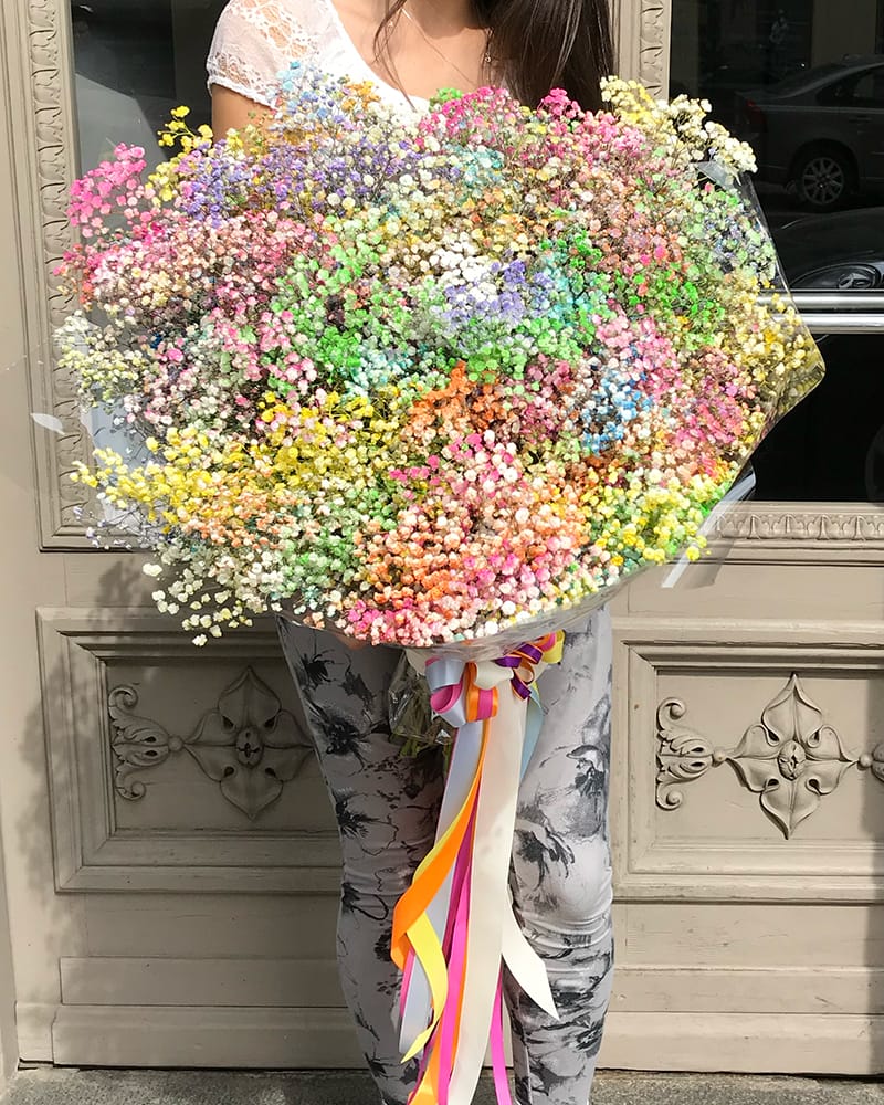 Dažādu krāsu Gypsophilia dekoratīvā iepakojumā, pušķī 25 gb.