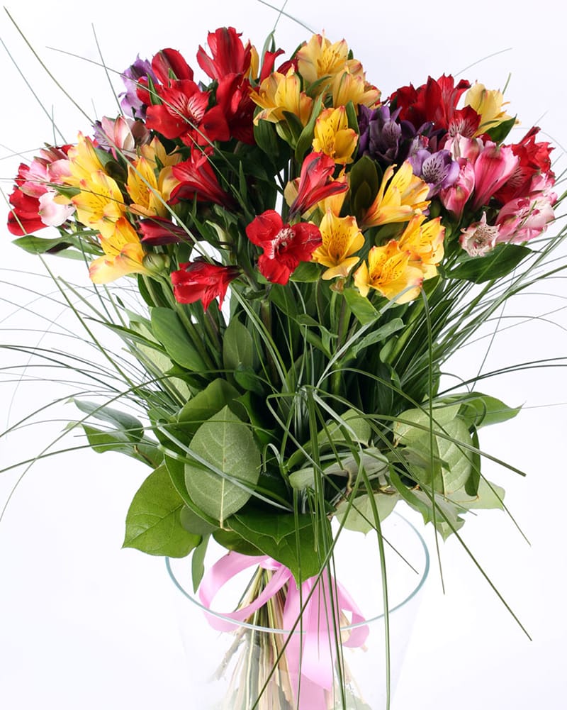 Krāsainu Alstromēriju pušķis