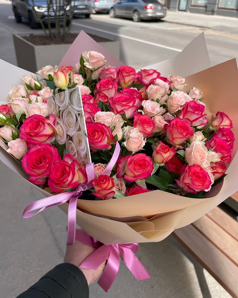 101 rozā peonija