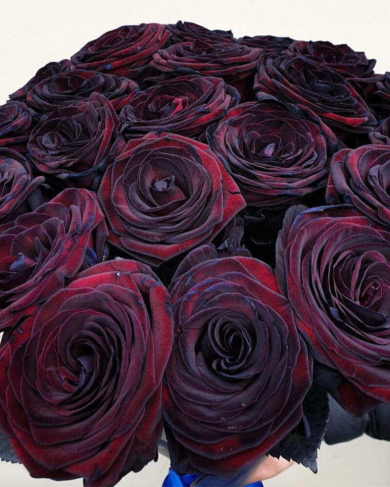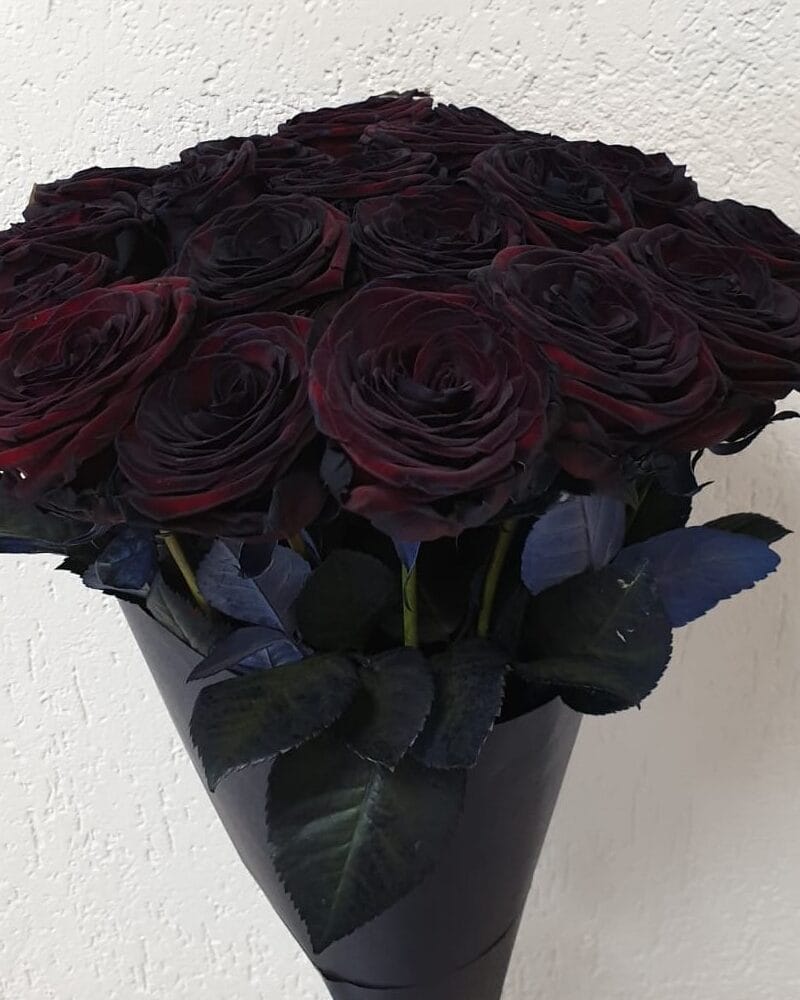 Melnu rožu pušķis, pieejamas iepriekš pasūtot. Minimālais ziedu skaits pasūtījumā- 9 rozes.