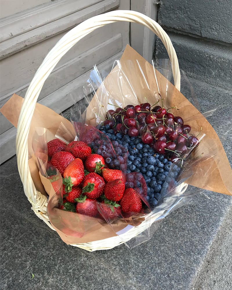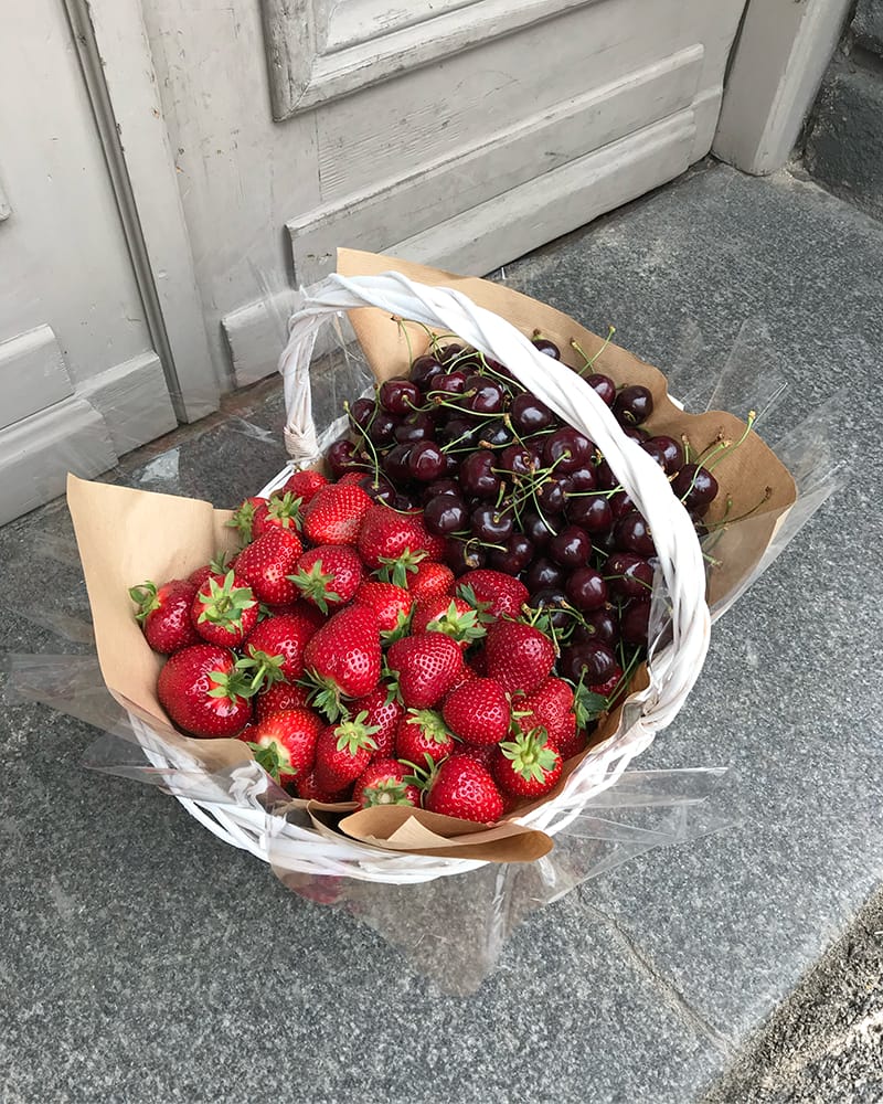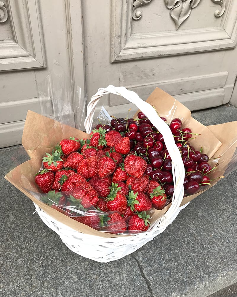 Grozā ir ~ 5 kg ogu- zemenes un ķirši.