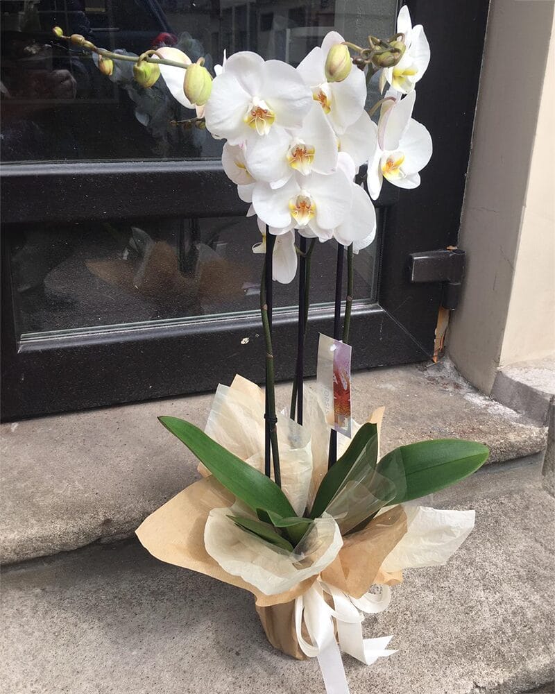 Orhideja dekoratīvā iepakojumā