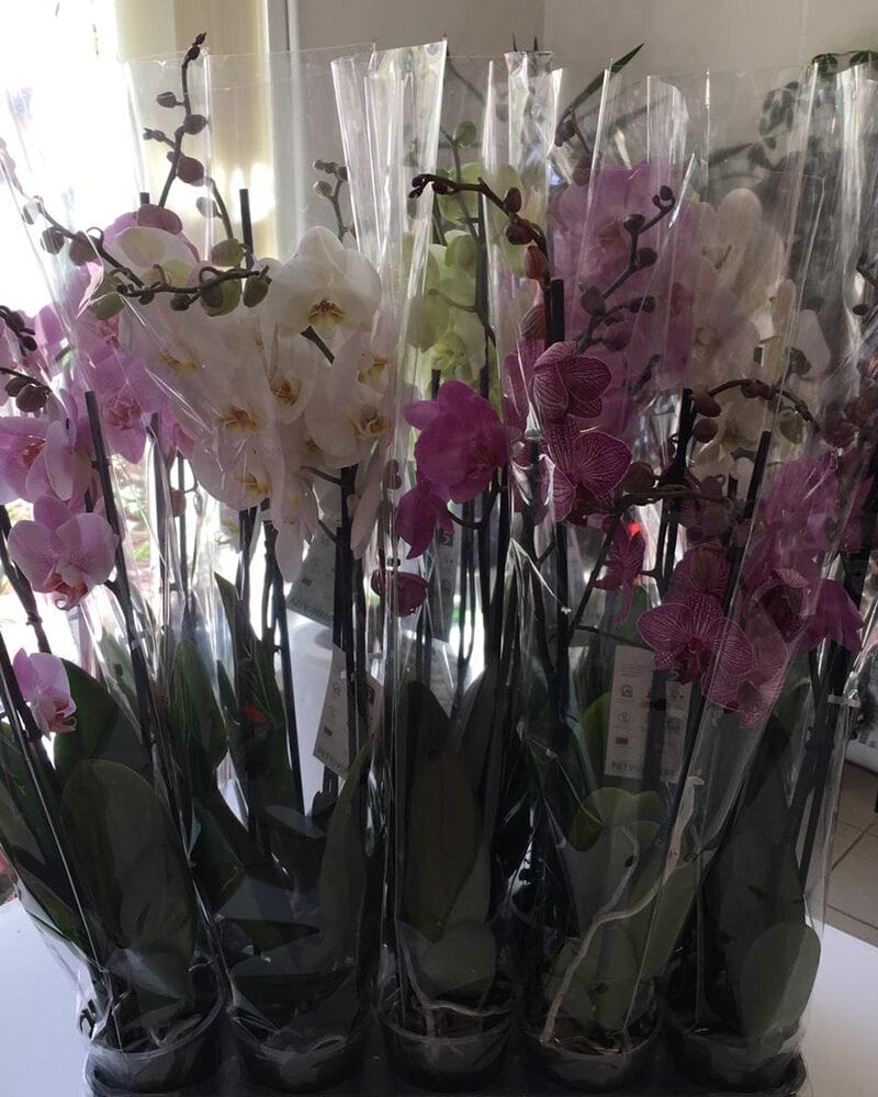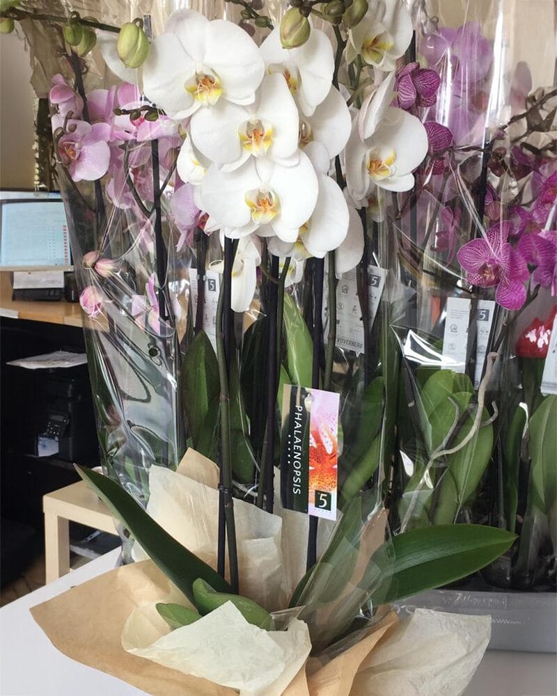 Dažādu krāsu Orhideja Phalaenopsis, 3 ziedu kāti, noformēta kā dāvana. Pieejamas attēlā redzamās orhidejas. Vēlamo ziedu krāsu, lūdzu, norādīt komentāra laukā, kurš būs pieejams pasūtījuma noformēšanas gaitā.Krāsa netiek garantēta.