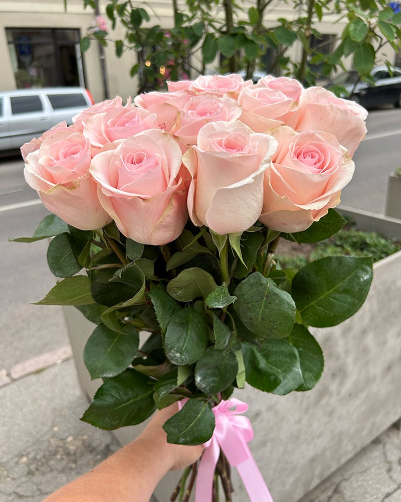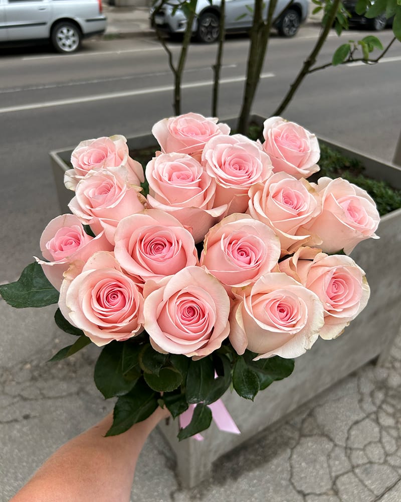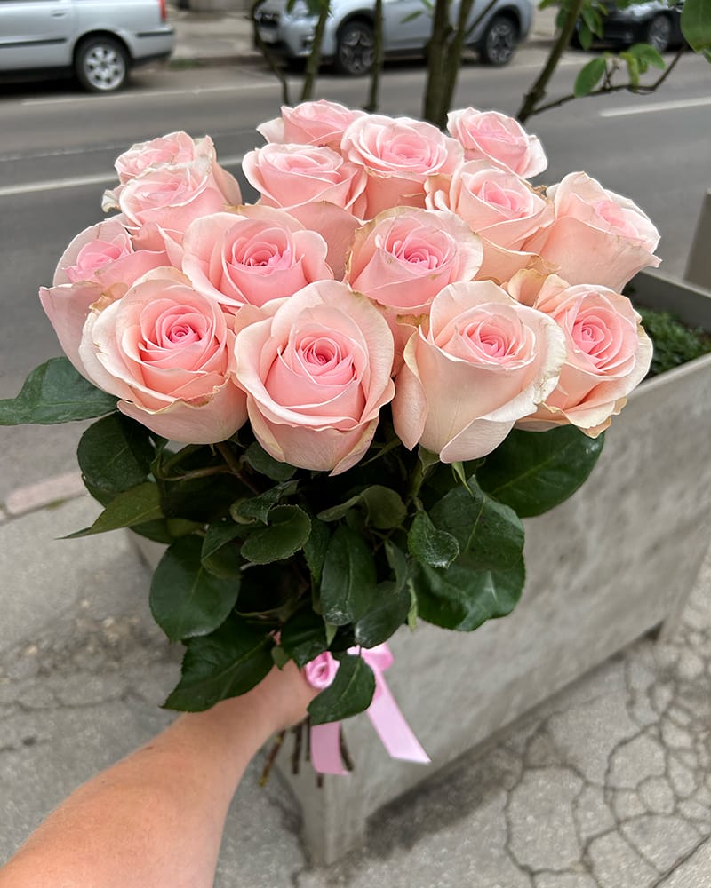 Premium klases rozā rožu pušķis, ziedi audzēti Ekvadorā. Standarta versijā pušķī 25 rozes. Rožu pušķī iespējams mainīt ziedu skaitu.