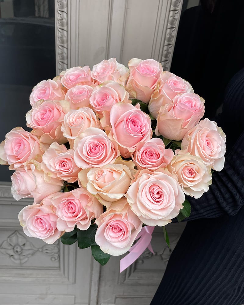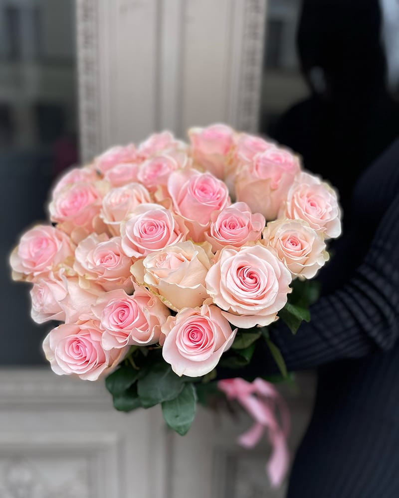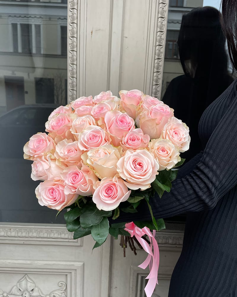 Rozā rožu pušķis ar maināmu ziedu skaitu, ziedu garumu varat izvēlēties no 40 līdz 70cm. Izvēlieties nepieciešamo rožu skaitu, mēs izveidosim pušķi un piegādāsim izvēlētajam adresātam. Minimālais rožu skaits pušķī – 11 ziedi.