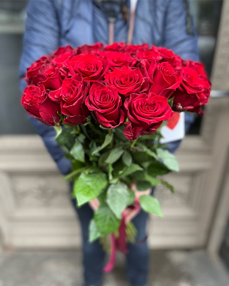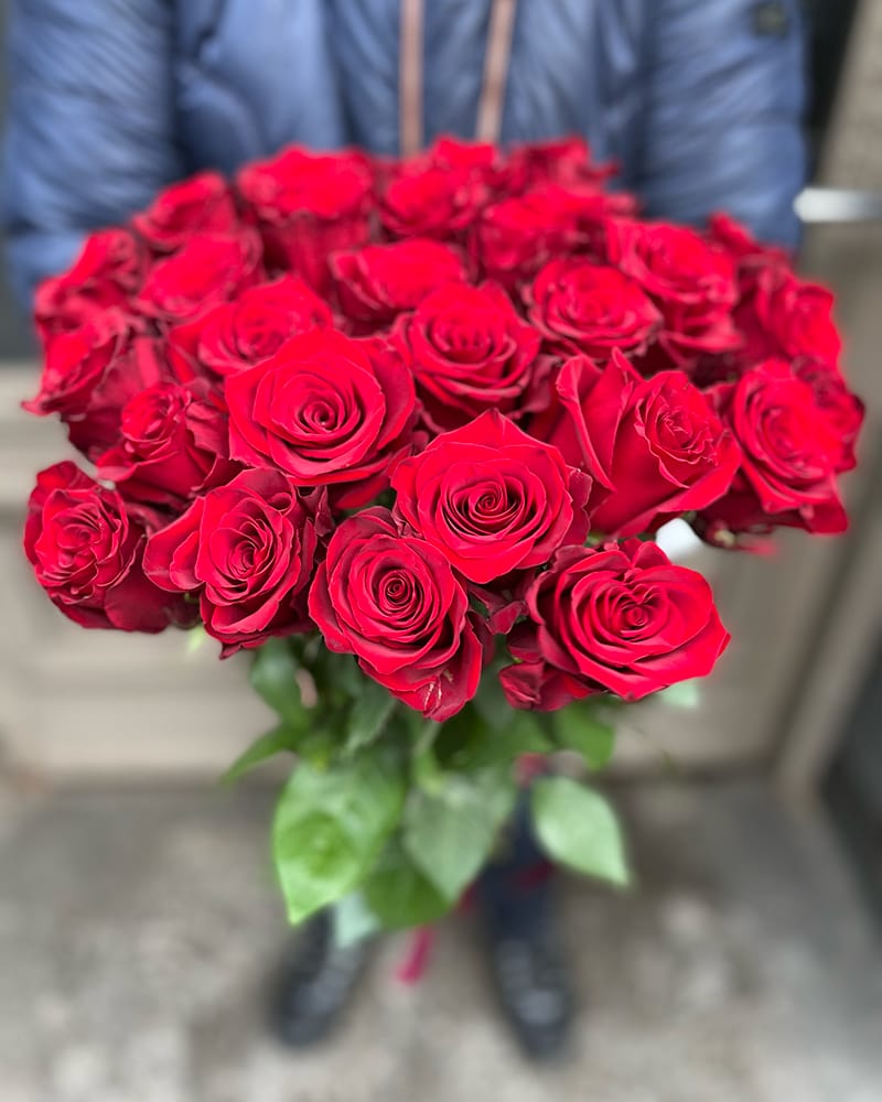 Rožu pušķis veidots no 29 sarkanām rozēm, ziedu garums 60-70cm. Ziedu pušķī iespējams mainīt ziedu skaitu.