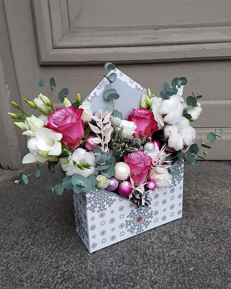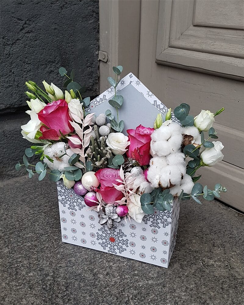 Svētku kompozīcija Balta dāvanu aploksne