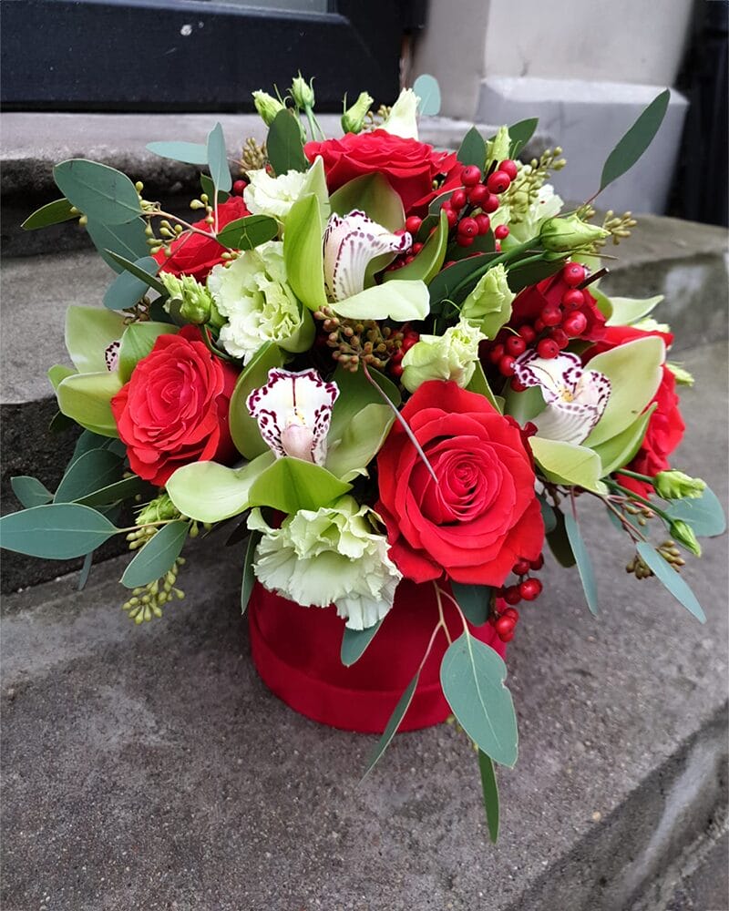 Ziedu kopozīcija sarkanā kastē